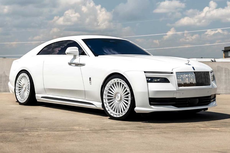 این مدل بیش از نسخه استاندارد جلبتوجه میکند و با طرح رنگی کاملاً متضاد اسپکتر بلک بج طراحی شده است. برخلاف تیونرهایی مثل منصوری که عاشق رنگهای تند یا کیتهای بدنهٔ عجیب هستند، اسپکتر RS با رنگ سفید لینن رویکردی آرامتر اما همچنان خیرهکننده دارد. آنچه این مدل را متمایز میکند، جزئیات دقیق آن است. اولین چیزی که چشم را میگیرد، کاهش ارتفاع سیستم تعلیق و رینگهای عظیم 24 اینچی با روکش براق در رنگ سفید لینن است. این اسپکتر احتمالاً تنها خودرویی در جهان است که با چنین رینگهای بزرگی همچنان سواری نرم و راحتی ارائه میدهد.