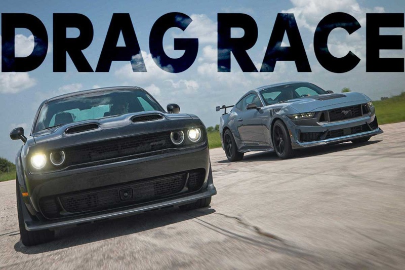 این مسابقه یک درگ ساده با پیروزی موستانگ نیست زیرا دارک هورس چنان ضربهای به رقیب زد که نتوانست از جایش بلند شود. در هر استارت، داستان یکسان بود. هلکت درجا میماند، موستانگ فوراً جلو میافتاد و تا پایان 400 متر فاصلهای بهاندازه طول یک اتوبوس بین آنها ایجاد میشد! اول به چلنجر نگاه کنیم. هلکت وایدبادی با موتور سوپرشارژ 6.2 لیتری همی V8 وارد میدان میشود که 707 اسب بخار قدرت و 880 نیوتن متر گشتاور تولید میکند. این غول رعبانگیز روی رینگهای 20 اینچی با لاستیکهای چسبنده پیرلی سوار است و ابهتی دارد که حتی چراغهای راهنمایی را ساکت میکند. بااینحال، چلنجر با وزن 2027 کیلوگرم، خودروی بسیار سنگینی است.