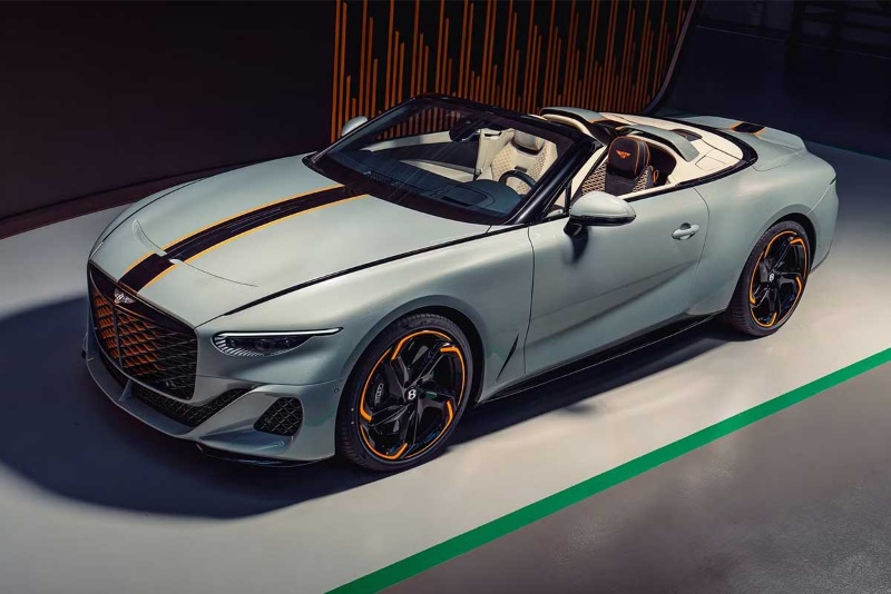 در این مدل اما موتور W12 با طراحی تک ساختی که در همکاری با یکی از مشتریان بنتلی خلق شده، همراه است. نمای بیرونی این بتور کانورتیبل با رنگ اوپالایت و تزئینات بلوگا و نارنجی ماندارین، شامل یک نوار مسابقهای مرکزی با دو خط تزئینی باریک در دو طرف، آراسته شده است. کابین از طراحی یک بهعلاوه یک بهره میبرد که یعنی سمت راننده با چرم و آلکانترای مشکی بلوگا و سمت سرنشین با چرم سفید لینن و آلکانترا تزئین شده است. فضای بار عقب نیز با تزئینات مشکی بلوگا و نارنجی ماندارین هماهنگ شده و شامل مجموعه چمدان دوتکهای است که بهطور خاص برای این خودرو طراحی شده است. این چمدانها، مانند صندلیها، در رنگهای مشکی بلوگا و سفید لینن عرضه میشوند که یکی برای راننده و یکی برای سرنشین است.